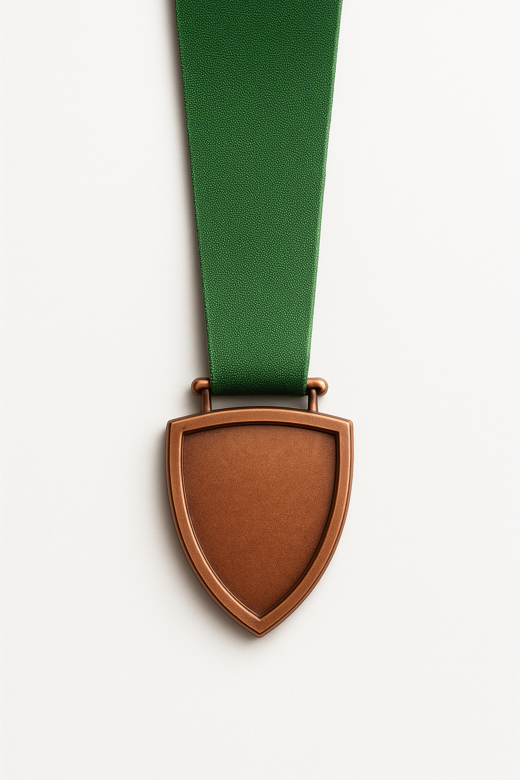 Shield insert medal in shiny gold, silver and bronze. Medals feature an elegant design that frames the space for your custom center insert.