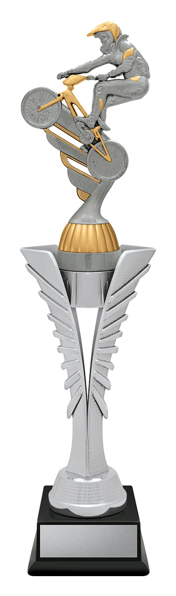 Silver Spear trophies showcase a brilliant top on a distinctive "spear" riser - the top finished in antique silver. Available in 3 sizes.