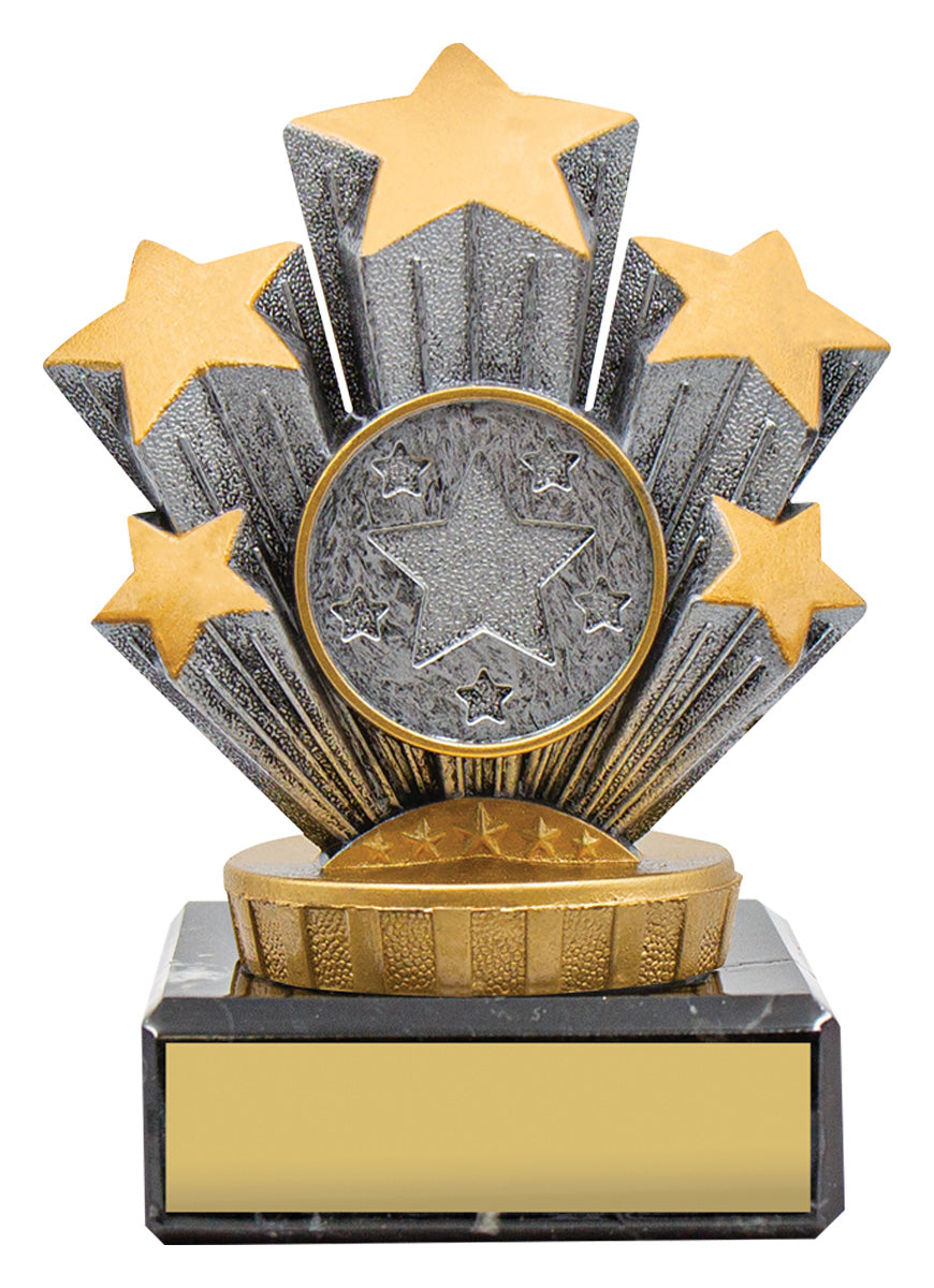 Reliable and affordable trophy choice, the Marble Trophy series features classic European marble and the unique Stars holder top. Marble trophies available in 4 sizes and provide extra prestige to your trophy award presentation.