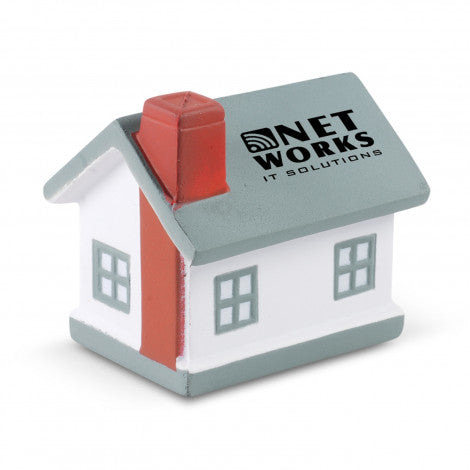 House-shaped squeezable stress reliever made from soft polyurethane.