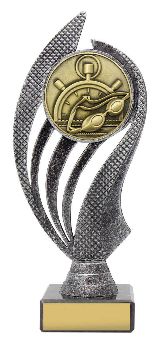 Husky series of trophies on premium black marble allows for different award options for your activity. Appealing antique silver and gold combination over number of sizes.