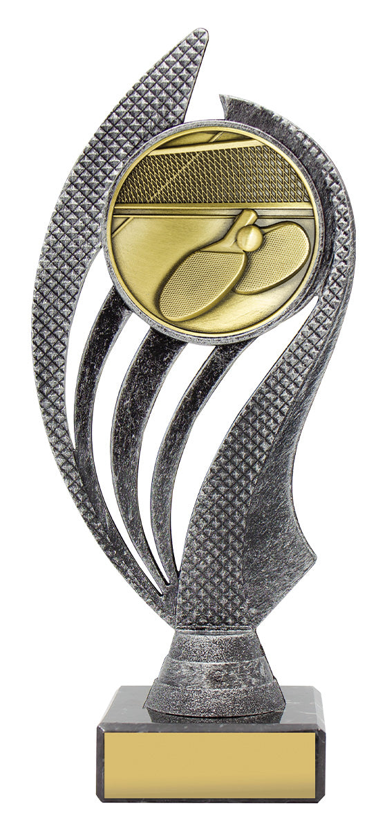 Husky series of trophies on premium black marble allows for different award options for your activity. Appealing antique silver and gold combination over number of sizes.
