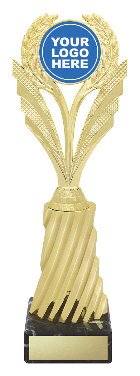 Simple yet effective trophy to showcase your custom logo. The target holder sits atop an attractive spiral riser which is finished in classic trophy gold.