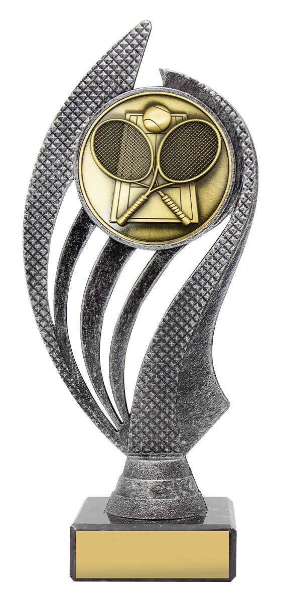 Husky series of trophies on premium black marble allows for different award options for your activity. Appealing antique silver and gold combination over number of sizes.