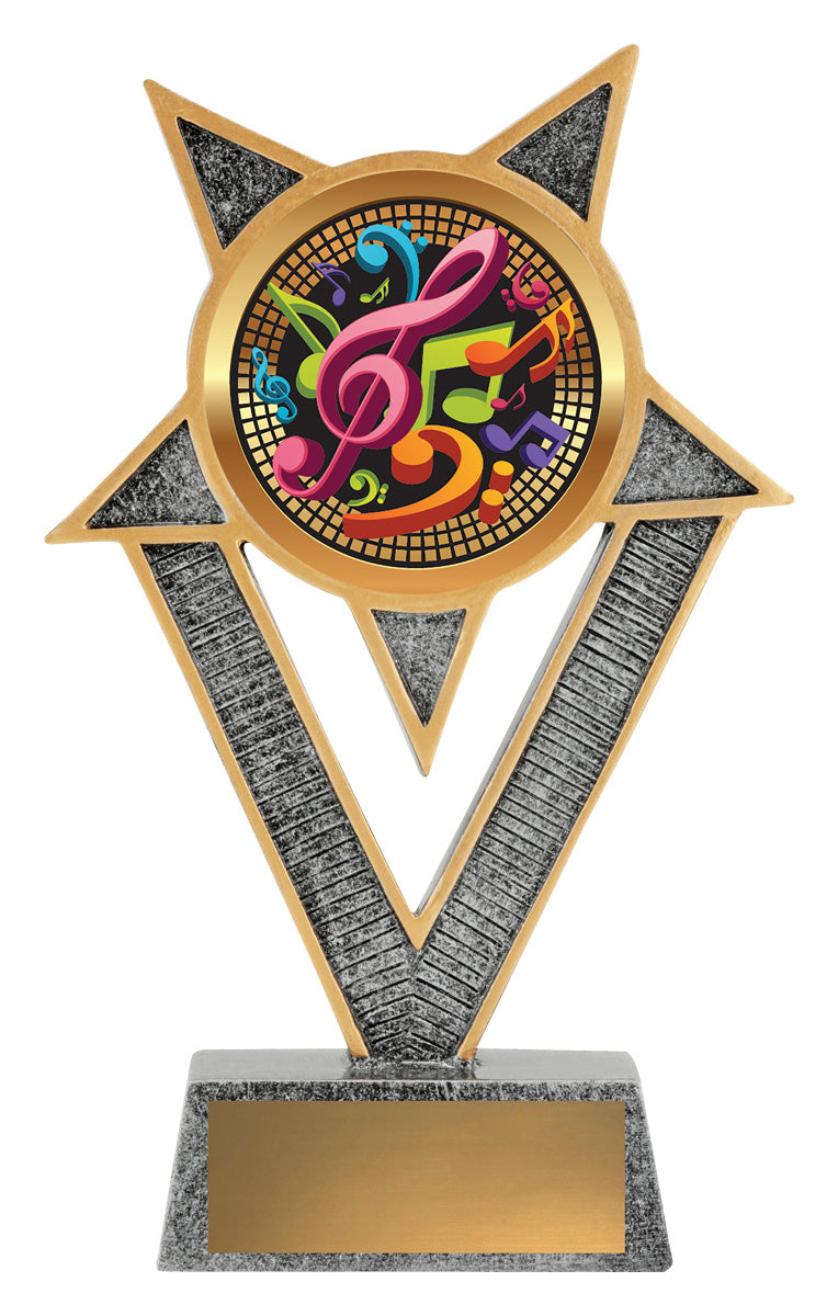 Star inspired trophy series, the Ventura offers prime position for colour insert to represent your sport.