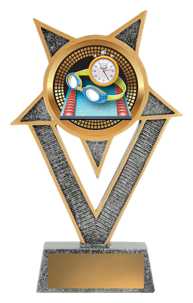 Star inspired trophy series, the Ventura offers prime position for colour insert to represent your sport.