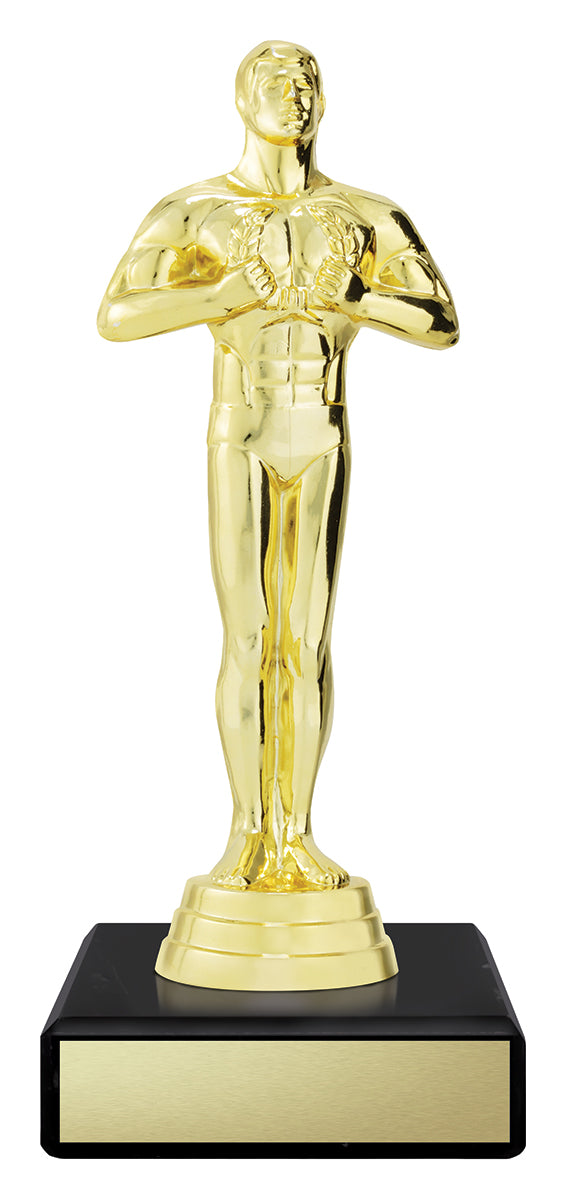 The traditional bright gold achievement icon is a versatile trophy option for different award categories. Effective black base provides plenty of space for your engraving requirements.