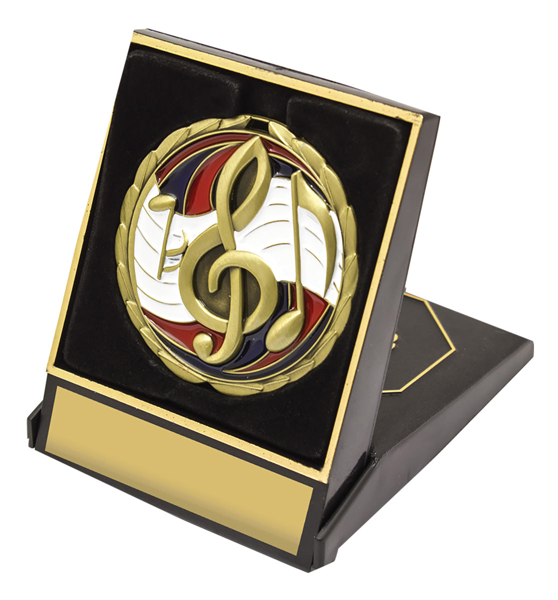 Sturdy black medal box with gold trim and wreath front to hold a 25mm insert - ideal for customisation or choose an insert for your sport or activity from the generic range. Box to suit 62mm diameter medal.